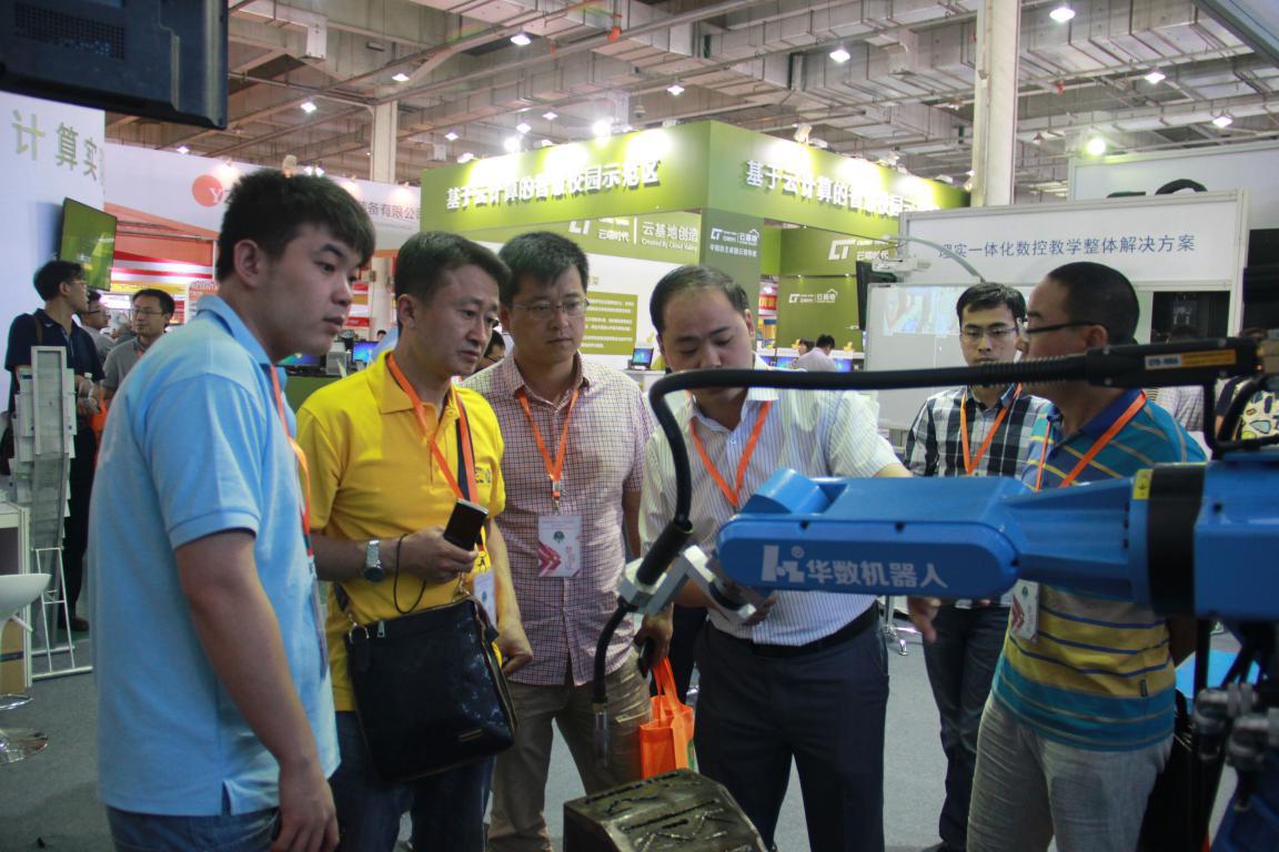 在“互聯(lián)網(wǎng)+教育”的變革以及市場(chǎng)前景的推動(dòng)下,越來越多的企業(yè)試水“互聯(lián)網(wǎng)+教育”,越來越多的院校愈加關(guān)注并嘗試引入新教育模式。在這種大背景下,華中數(shù)控不斷開拓教育市場(chǎng),創(chuàng)新教育理念,更新教育方法,升級(jí)教育設(shè)備。“理實(shí)一體化”“機(jī)器人實(shí)訓(xùn)平臺(tái)”“自動(dòng)機(jī)器人”等一系列教育解決方案,對(duì)提高學(xué)生專業(yè)技能,增強(qiáng)學(xué)生就業(yè)能力,加強(qiáng)校企深入合作,促進(jìn)職教事業(yè)發(fā)展具有重要推動(dòng)作用。華中數(shù)控這一系列解決方案既借鑒國內(nèi)外優(yōu)秀“互聯(lián)網(wǎng)+教育”模式,又考慮了國內(nèi)職業(yè)教育的現(xiàn)狀及特點(diǎn),因其良好的應(yīng)用前景,在展會(huì)上受到了大家的熱烈關(guān)注和一致好評(píng)。