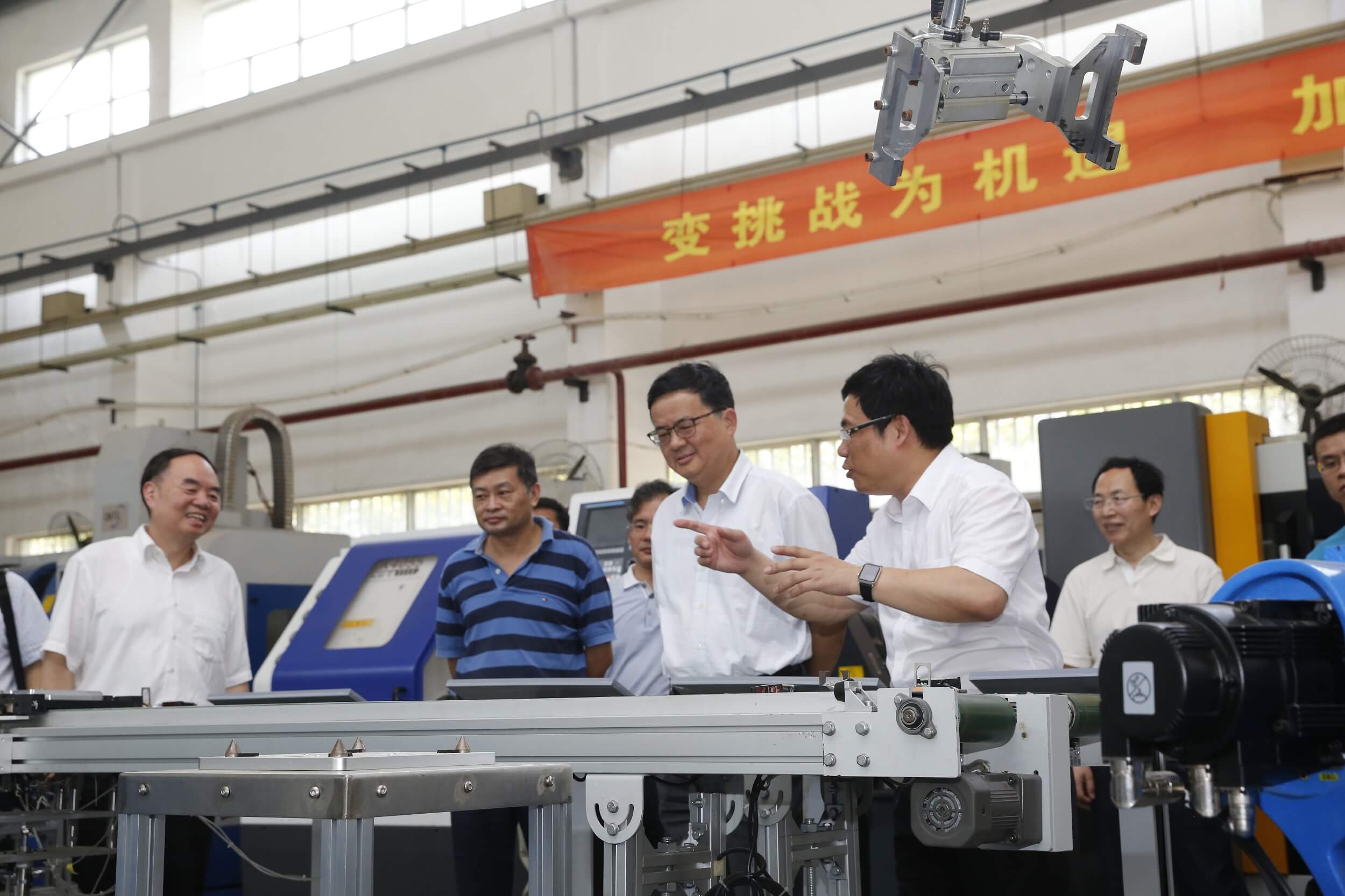 2016年7月28日,中國(guó)工程院院長(zhǎng)周濟(jì)、湖北省副省長(zhǎng)郭生練、湖北省科技廳領(lǐng)導(dǎo)等一行來到華中數(shù)控視察調(diào)研。