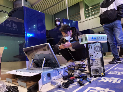 2月27日,華中數控接到海關總署要求在北京西客站加裝“紅外熱成像智能人體測溫系統”的通知,火速派出工程師崔曉龍、邱志新和吳碩等趕赴現場。團隊成員熱情高漲,戴上口罩,脫掉厚重的棉衣輕裝上陣,聚精會神的盯著控制屏幕,爭分奪秒安裝調試“紅外熱成像智能體溫檢測系統”,滿足國際列車旅客出入境疫情防控需求。
