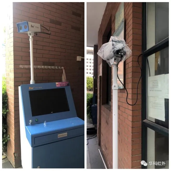 本次設備安裝均由華中數控兩位工程師熊焰、方天完成,分別安裝在學校西大門兩側,經過工程師的精心調試,設備正式上崗,這些設備可在1秒內檢測出經過人員的人體溫度 ,自動追蹤體溫異常者并報警,屆時學校值班教師在電腦前即可立即對體溫異常的師生進行個別二次檢測排查,立即啟動預案采取就地管控措施。