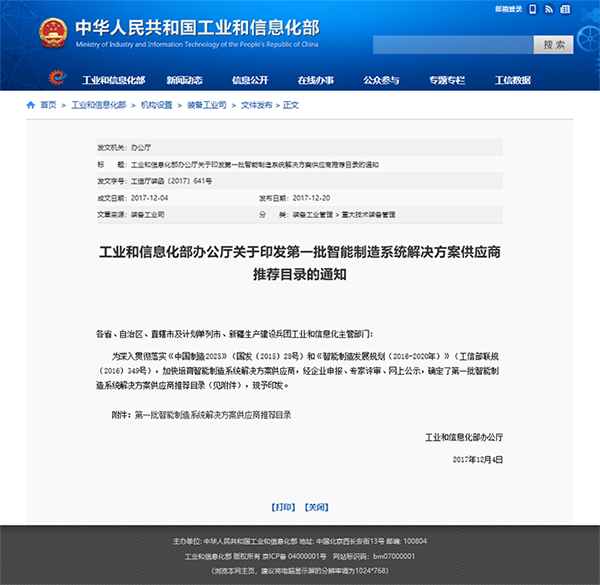 2017年12月20日,工信部正式發(fā)布了關(guān)于印發(fā)第一批智能制造系統(tǒng)解決方案供應(yīng)商推薦目錄的通知,為深入貫徹落實(shí)《中國(guó)制造2025》和《智能制造發(fā)展規(guī)劃(2016-2020年)》,加快培育智能制造系統(tǒng)解決方案供應(yīng)商,經(jīng)企業(yè)申報(bào)、專家評(píng)...